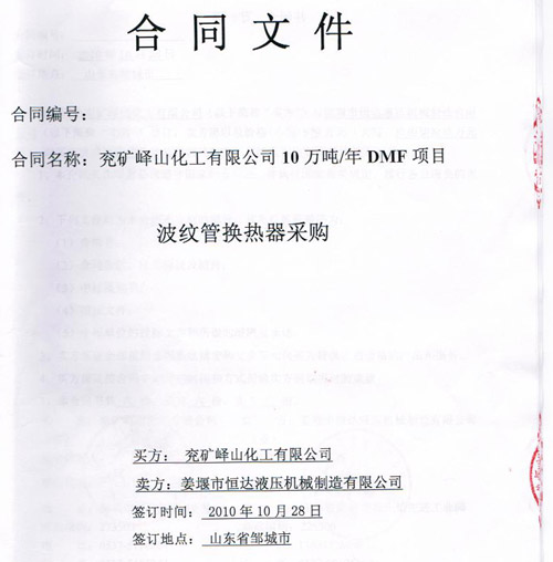 山東兗礦嶧山化工購(gòu)買我司波紋管換熱器